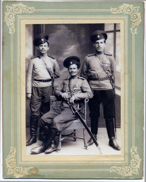 Казаки станицы Митякинской, хутора Средне Митякинского. Первый предположительно Беляев Яков Акимович. фото Елены Любимовой.