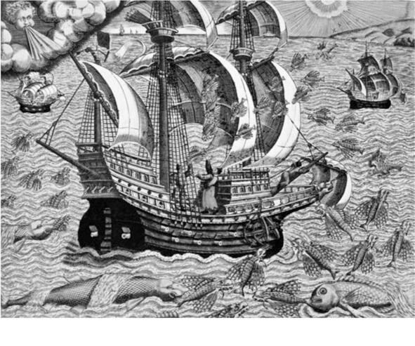 Встречный ветер, дошедший от идущего прямо на вас норвежского галеона, донёс удушающий запах трупного смрада и разложения. Полуистлевшее жуткое судно с изорванными в клочья парусами покрылось тиной и обросло ракушками, а члены экипажа лишь издали могли быть приняты за людей.