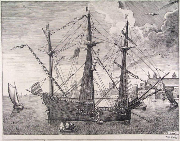 Навстречу вам движется эскадра торговых каракк в сопровождении легковооружённых боевых коггов, оснащённых барсами1 и фальконетами. Что ж, всё ж лучше, чем никакой охраны вообще. Пиратскую мелочь, орудующую на парусно-гребных судах в прибрежных водах это, может быть, и отпугнёт, но против кораблей регулярного флота не продержится.