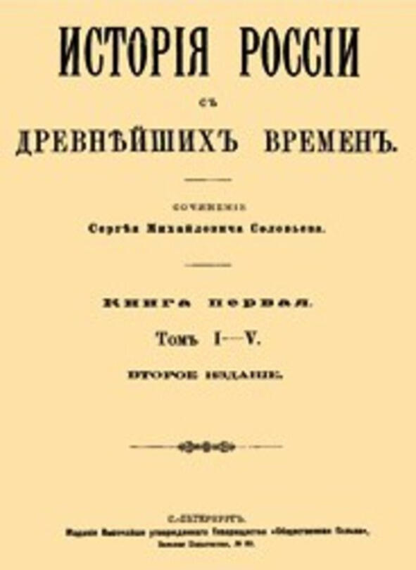 Обложка второго издания книги С. Соловьева Источник: https://ru.wikipedia.org/wiki/История_России_с_древнейших_времён