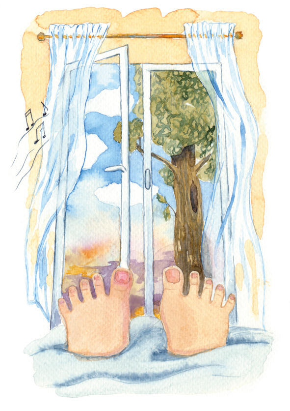 ДУША: Ну, угомонись, дай полежать просто спокойно и посмотреть на небо в окне. Какие красивые облака, боже мой, какие красивые! Этот яркий, сочный, насыщенный синий цвет и такие красивые кучерявые облачка. Я сто лет просто вот так не лежала и не смотрела на небо. Всё время куда-то бежим, всё время торопимся, всё время перебираем в голове все эти задачи, которых никогда не становится меньше. Как же хорошо! Просто вот так лежать и смотреть, и наслаждаться светом, формой, красотой, такое состояние Вроде бы просто смотрю на небо, а такое наполнение чувствую, такую радость, такое что-то тонкое, что-то такое из детства, давно забытое, еле уловимое Так бы ещё я и на море, и на озеро, и на гору смотрела. Как я соскучилась по созерцанию красоты!