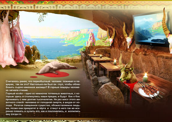 Горный козёл одно из немногих тотемных животных, с которым здесь и столкнулись наши предки, и будут бок о бок проживать с ним долгие тысячелетия. Не раз мясо этого животного спасёт человека от голодной смерти, а шкура от холода. Козлы скалолазы с глубокой древности проживали в горах, куда их тоже загнала стихия воды, где и познакомились они с человеком.