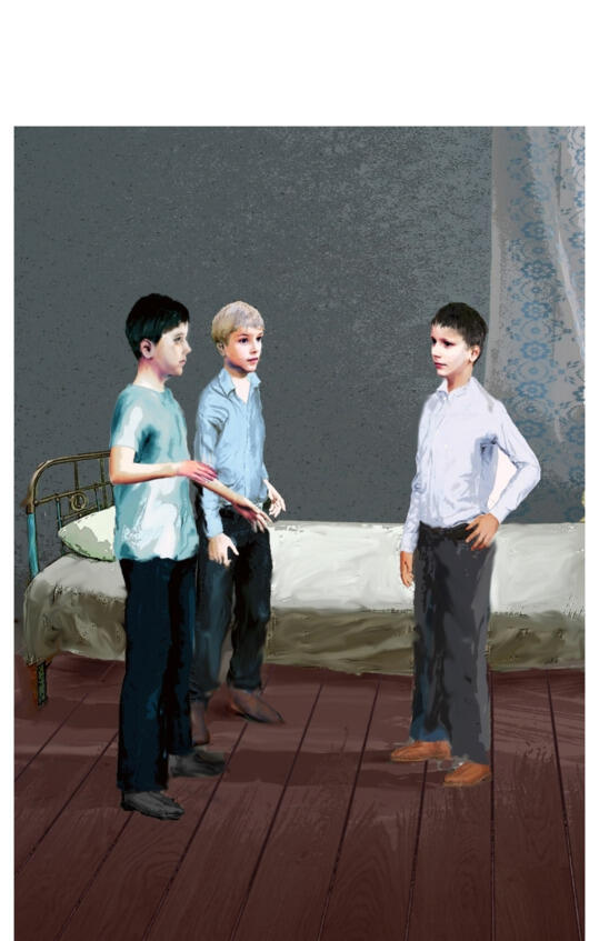 После ужина все ребята разошлись кто куда. Ромке нечем было заняться, да и устал он от всего пережитого за три дня. Вот он и отправился в свою спальню. Там он застал двух ребят. На самом деле, он их уже видел в обеденном зале. Один был чуть выше Ромки и заметно шире в плечах. У него были тёмные волосы, карие глаза. Второй был Ромкиного роста, светловолосый и не очень крепкого сложения. Почти как Ромка.
