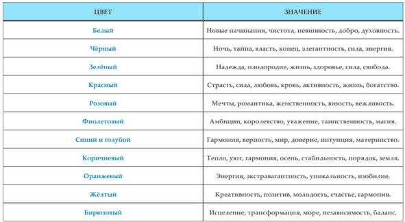 В таблице ниже приведены некоторые значения цветов. Попробуйте проанализировать свою планету, используя описания из этой таблицы. Вы можете создать свою таблицу и написать, что эти цвета значат лично для вас.