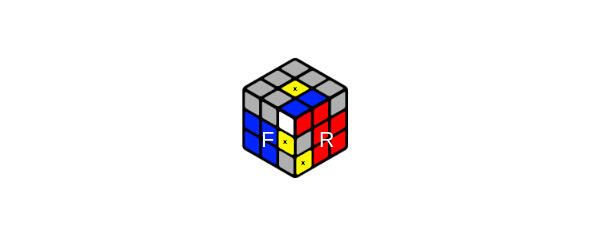 Цифрой 6 обозначим прямые шахматы (2 наклейки: одна наклейка на стороне R ребра FR, другая на стороне F угла FRU). Цифрой 9 (перевернутая 6) обозначим обратные шахматы (2 наклейки: одна наклейка на стороне F ребра FR, другая на стороне R угла FRU).