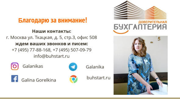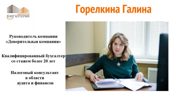 Меня зовут Горелкина Галина, мне 42 года, я многодетная мама. Считаю себя успешной в карьере я профессиональный бухгалтер и налоговый консультант; моей компании уже 16 лет, она была создана в 2003 году, в ней работает 21 бухгалтер в штате, 2 аудитора, юристы, программисты. Наша компания ведет бухгалтерский, налоговый, управленческий и финансовый учет в крупных бизнес-проектах, таких, как строительство, производство, международная торговля, представительства иностранных компаний, в частности: мебельные фабрики, производственные холдинги, логистические компании, фармацевтика, заводы, строительство метро, компании по строительству загородных домов, образовательные проекты и другие. Также мы ведем учет и в малом бизнесе.