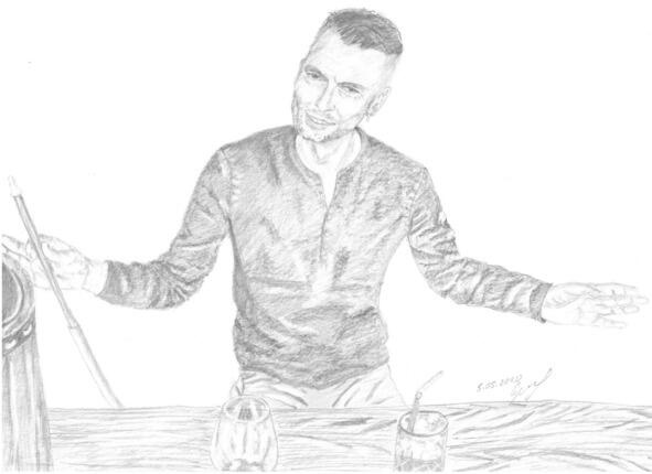 Ему было, наверное, под семьдесят. Ботокс, ослепительные имплантаты во рту, упражнения и загар делали его шестидесятилетним, но, казалось, что шамкает печальная мумия. Наверное, неверная полутьма кафе играла шутки. Полу-тьма (полу-свет?) от листвы каштанов, в которой бодрые молодящиеся существа пили фрэши и минералку.