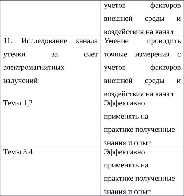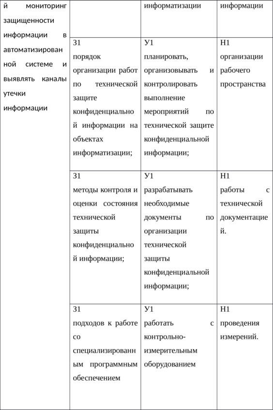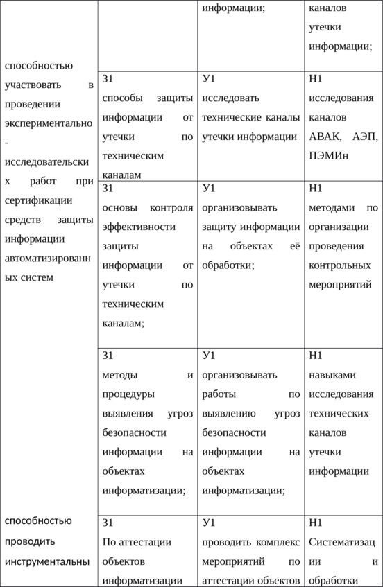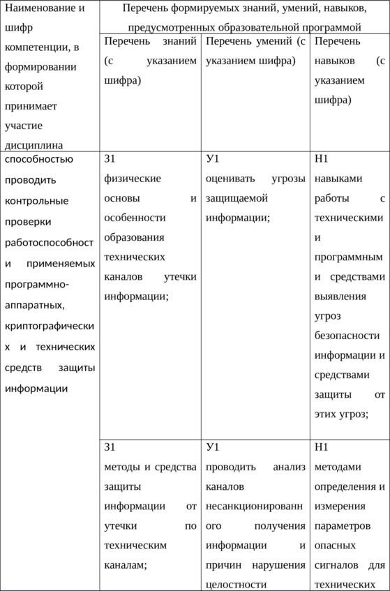 Таблица 1 Компетенции, знания, умения, навыки