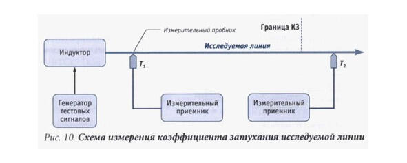 K погонное затухание сигнала дБ/м. K = (R1-R2) /L