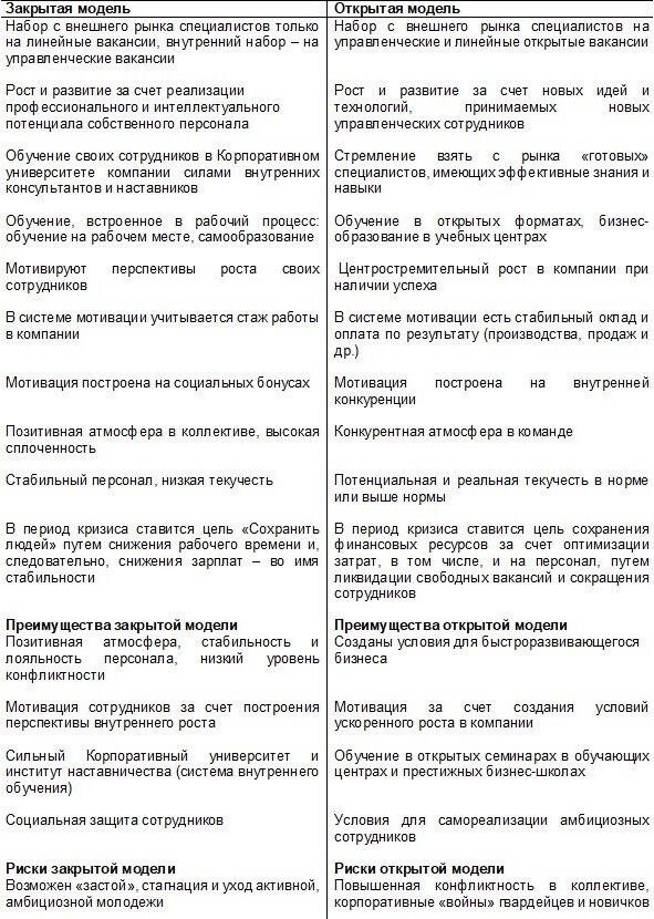 Табл. 1. Закрытая и открытая модели корпоративной культуры