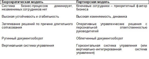 Табл. 3. Бюрократическая и партнерская модели корпоративной культуры