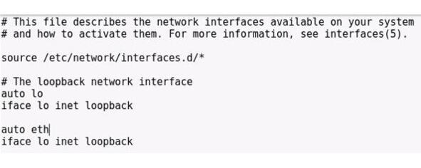 После установки производим настройки DHCP-сервера. Перейдем по адресу: /etc/network/interfaces. Пропишем (рисунок 49):