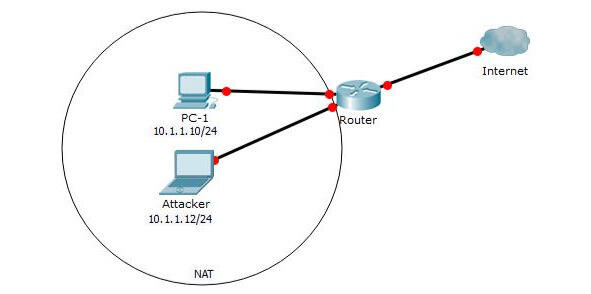 Для проверки уязвимости соберем лабораторный стенд по топологии, представленный на рисунке 40. Для ARP-спуфинга воспользуемся программой Cain & Abel.