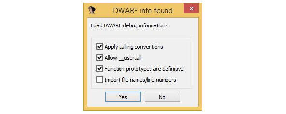 Иногда после компиляции в файле остаётся отладочная информация. Тогда IDA покажет окно, изображённое на рисунке 62 с предложением загрузить отладочную информацию.