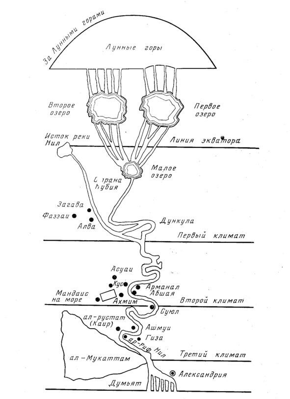 Карта Нила по «Книге картины Земли» Аль-Хорезми