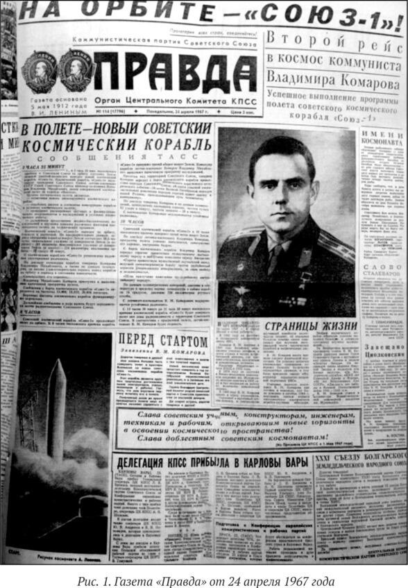 И на самом видном месте, в правом верхнем углу первой полосы гордое заявление: «Успешное выполнение программы полёта советского космического корабля Союз-1». Ура, товарищи!