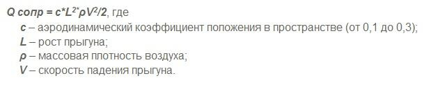 До принятия решения о параметрах необходимой системы торможения следует определить, каким импульсом будет обладать прыгун в начале остановки.