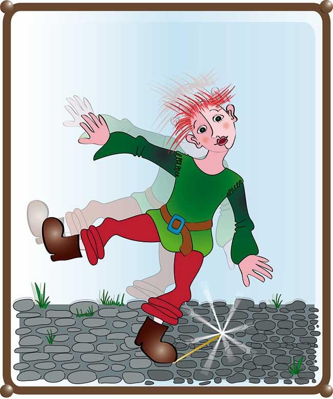 Последним бежал лучший ученик мэтра Амальгамыча, худенький некрасивый Страшик. Стараясь не отставать от товарищей, он совсем не смотрел под ноги и вот обо что-то споткнулся, упал, пребольно ушибив коленку. Вставая, Страшик нащупал в пыли кругленькую палочку, так некстати подвернувшуюся ему под ноги, и без лишних раздумий сунул её в карман.