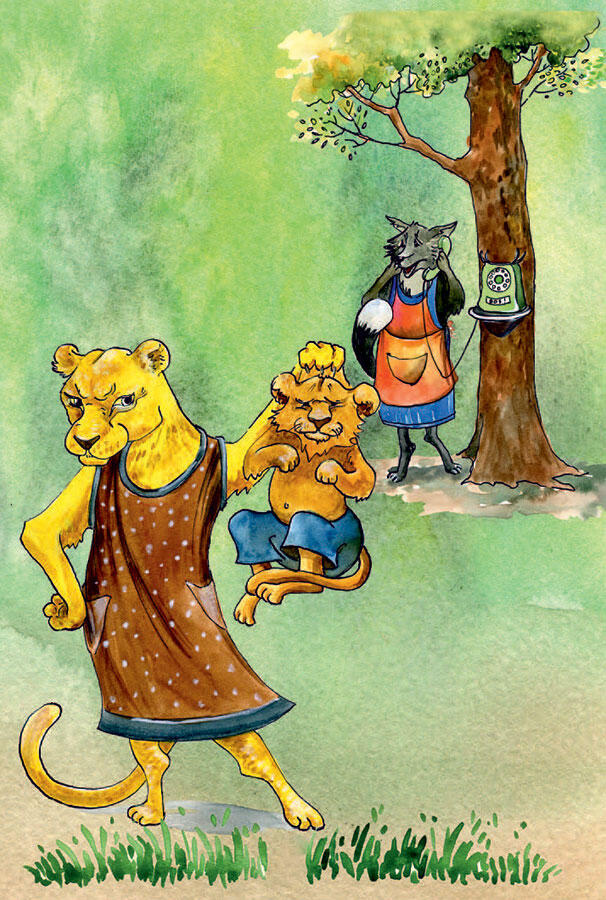 Львёнок Рык поранил лапы и боится гнева папы.
