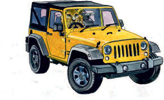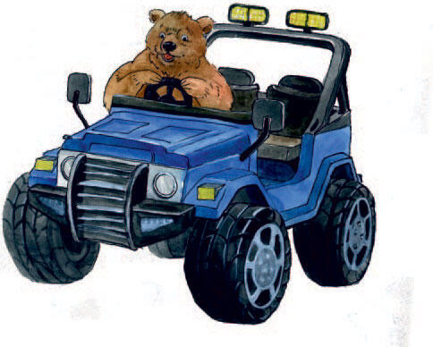 Джип у мишки, джип у львёнка крутит круг вокруг себя.