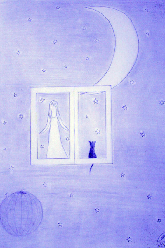 «Окно в Иную Реальность» (рисунок из серии «Девочка и Кот», 2011)