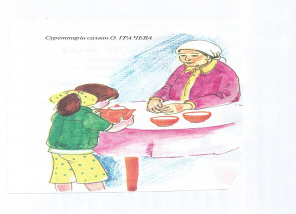Гүлмінез асханадағы тоқ шәйнектің бұрқылдап жатқанын көріп, анасына жүгіріп келді: