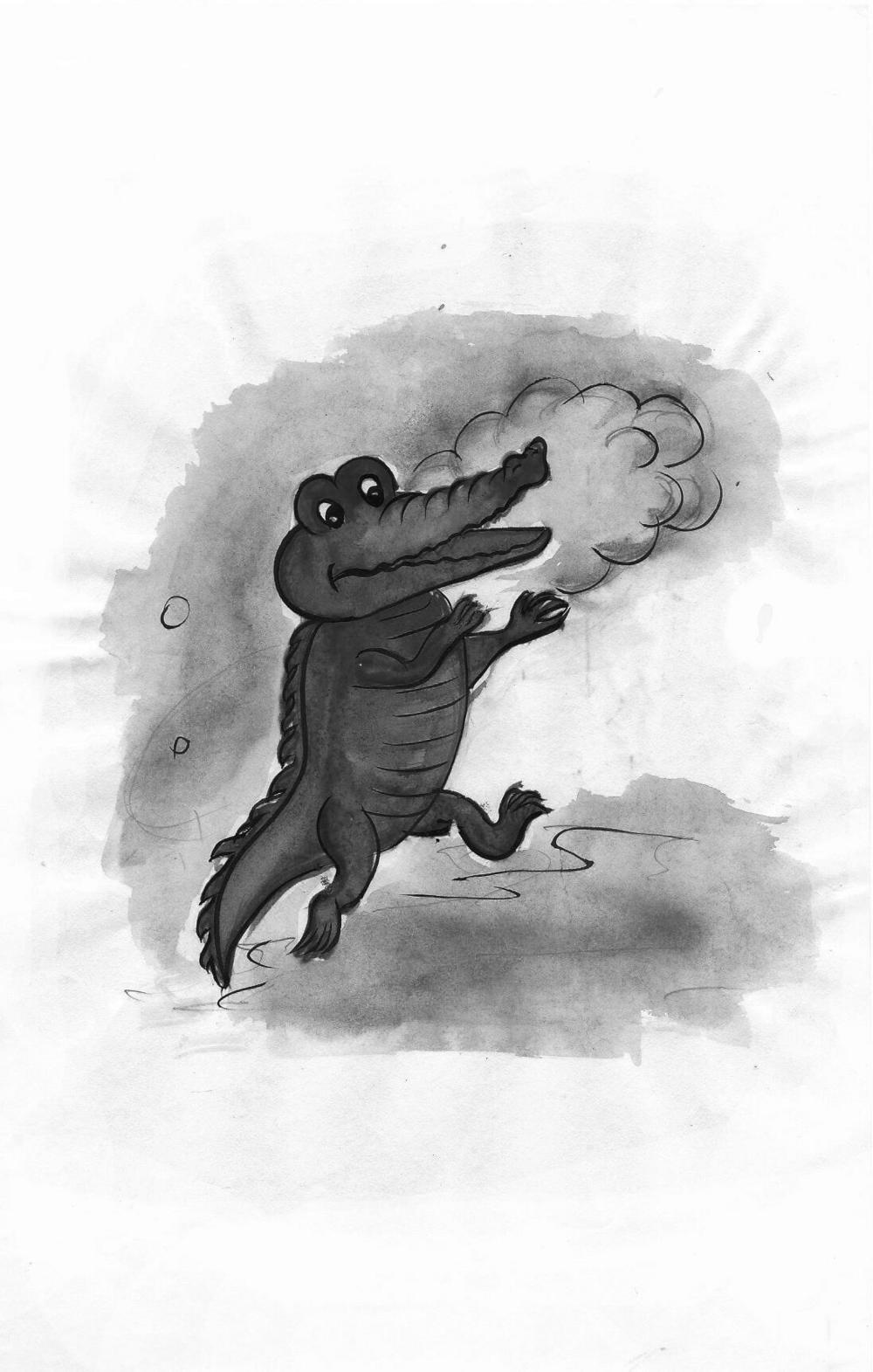 Однажды он случайно забежал во двор и увидел двух мальчиков, сидящих с книжкой на брёвнышке. Старший из ребят выразительно читал младшему: «Долго-долго крокодил море синее тушил. Пирогами и блинами и сушеными грибами» Любопытный крокодильчик сунул нос в книжку и обомлел.