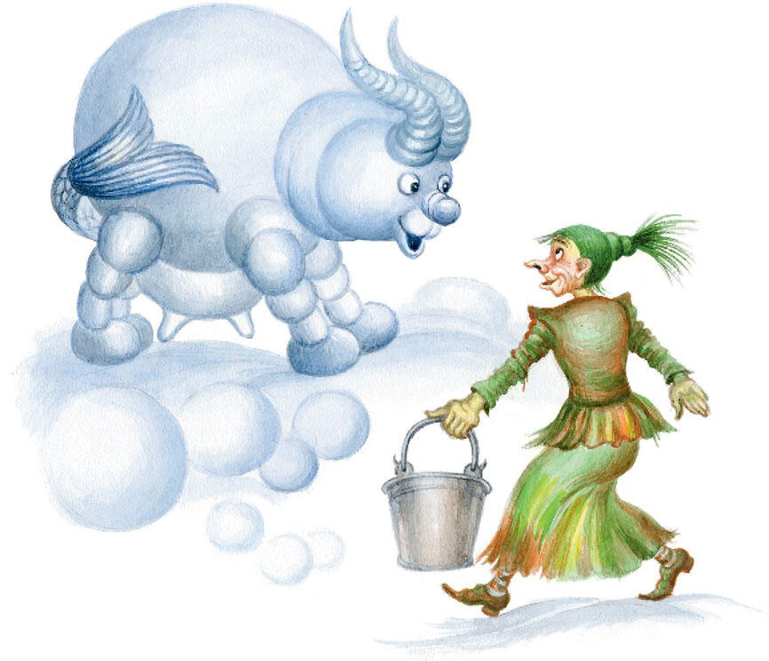 Никто вас не выгоняет, решительно сказала Кикимора. Козу из снега лепить будете. Потом Баба-яга её колдовством своим оживит, вот вам и молоко.