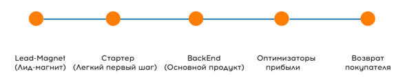 Легкий первый шаг это первый платный или условно бесплатный продукт в линейке. Его задача снизить порог входа в следующее предложение и перевести пользователя в разряд покупатель. Так человеку проще платить в дальнейшем. После потребления, он должен сподвигнуть к покупке основного продукта. Цена от 0р до 990р (иногда до 5000р)