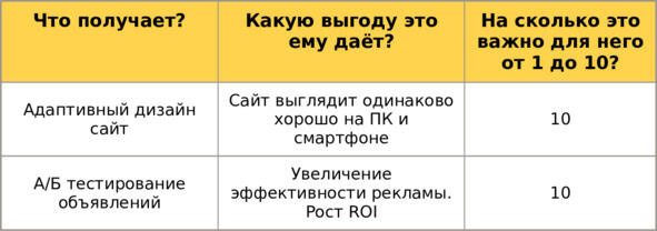 Мотивация зачем покупать ваш продукт. Здесь вы лучше сможете понимать плюсы вашего продукта, которыми можете оперировать в будущем.
