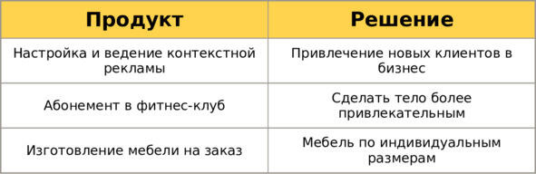 Задача или проблема определите какую проблему или задачу решает ваш продукт. Очень важно понять и запомнить, что есть продукт, а есть решение. Вам нужно определить и понять для себя какое решение даёт ваш продукт клиенту.