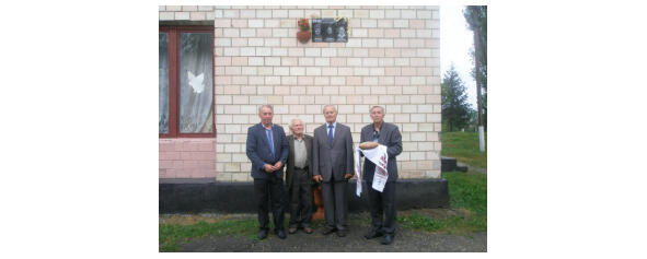 Фото на память. Слева направо: Будзинский Анатолий Францевич сын и внук Праведников мира (г. Дунаевцы), Мельничук Алексей Прокопович Председатель совета ветеранов войны и труда села Зеленче (с. Зеленче, ныне покойный), Скоробогач Петр Васильевич Председатель совета ветеранов войны и труда г. Дунаевцы и Дунаевецкого района (г. Дунаевцы), Будзинский Илья Францевич-сын и внук Праведников мира (г. Днепродзержинск, современное Каменское) у Мемориальной доски Праведникам мира семьи Шындыбыло-Будзинская открытой на фасаде Дома культуры села Зеленче Дунаевецкого района 24 августа 2014 г.