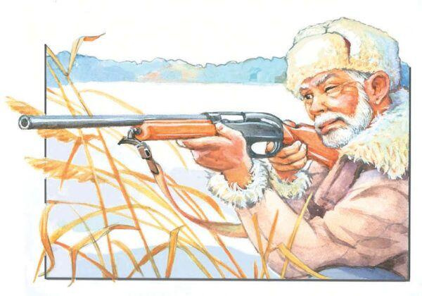 Он даже прицелился из ружья, но зайцы его заметили и кинулись в лес как сумасшедшие.