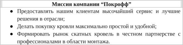 На сегодняшний момент, я являюсь председателем правления компании «Покрофф». Это предприятие с пятью производственными площадками по России (илл. 1). Годовой оборот у нас в прошлом году составил порядка 900 млн. рублей, сейчас численность насчитывает 230 человек. В таблице описана миссия нашей компании (таб. 1).