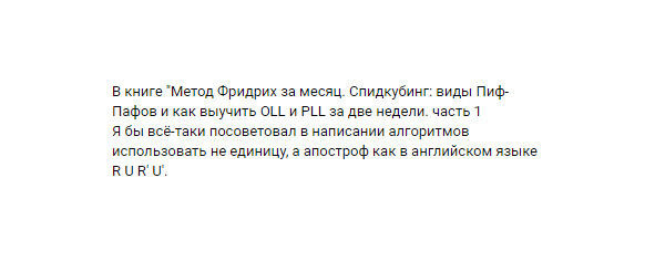 Для того, чтобы формулы были выучены на уровне мышечного запоминания (навыков и рефлексов) и их необходимо первоначально выучить. Вот именно в первоначальном заучивании у многих начинаются проблемы, которые многие решают по разному. Метод изложенный в данной книге позволит выучить формулы для первоначального заучивания и позволит применять формулы без «подглядывания», что в свою очередь, сделает ваши тренировки более эффективными, и сможете добиться выполнения алгоритмов за секунды. Выучив алгоритм с помощью запоминалки, Вы сможете натренировать его, используя любое свободное время (в транспорте, в очереди и т.п.).