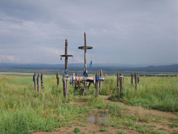 Всю ночь и всё утро шёл дождь. Родители Тони периодически делали подношения в обо (святилища, где поклоняются духам местности) проезжая рядом с ними, они кидали в окно монетки, конфетки, чтобы дорога была удачной. Обо обозначены ленточками и камнями, так что ошибиться сложно.