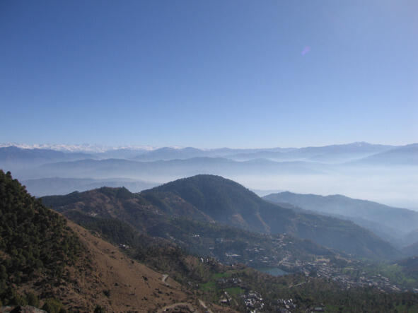 Сверху открывается великолепный вид на горы, городок и озеро внизу. Рыба в этом озере считается священной, и её кормят специально продающимися подношениями воздушным рисом. Говорят, некоторое время назад её сильно перекормили, и много рыб умерло