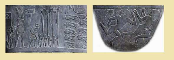 Палетка фараона Нармера. Деталь. Центральный фриз. Источник Википедия.