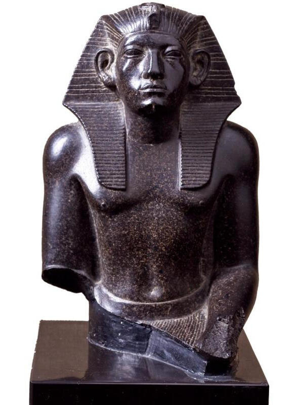 Скульптура во времена Среднего царства претерпевает значительные стилистические изменения. Ритуальные статуи не только размещались в гробницах, но и устанавливались в храмах наряду с изображениями богов. В скульптурном портрете Сенусерта III, выполненном из обсидиана, проявляется новая трактовка официальной скульптуры. [8] Идея прославления могущества конкретного фараона ведет к усилению человеческого начала в скульптурном изображении. Усиливается внимание к деталям изображения, используется пластическая лепка лица, важную роль играет контраст света и тени и мастерски используются возможности природного материала. В скульптурном портрете Аменемхета III, сына и преемника Сенурсета, мы видим воплощение образа сурового и мужественного властителя. Складки, идущие вдоль щек, обводка глаз все эти детали изображения превращают условный портрет в более индивидуализированный. Эта тенденция к созданию индивидуального человеческого образа в скульптурном портрете реализуется с величайшей глубиной и силой в короткий период Нового царства, получившего название эпохи Эхнатона.