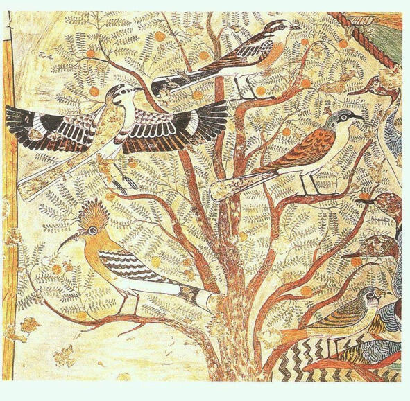 Дерево с певчими птицами. Фрагмент росписи гробницы номарха Хнумхотепа II. Источник Википедия.