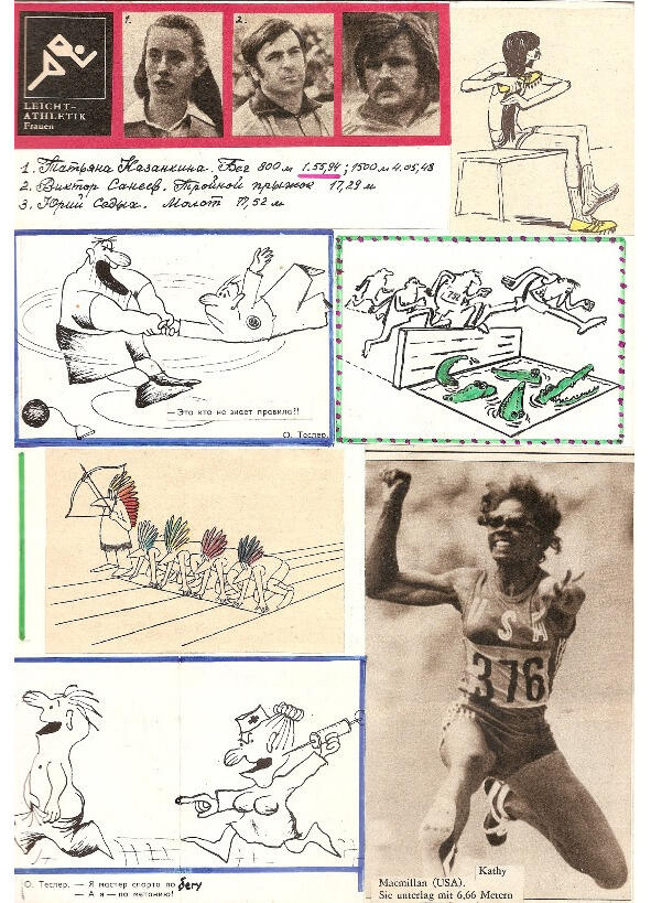 Татьяна Казанкина бег на 800м (1.54,94) *, бег на 1 500м (4.05,48)