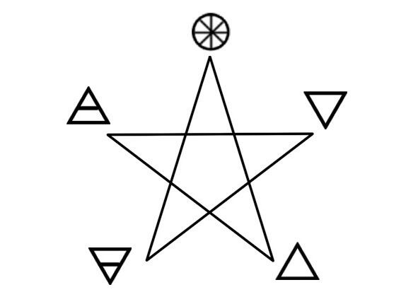 Этот символ, пожалуй, самый прославленный и сильнее всего ассоциируется с западной магией. Обычно в нем видят защитный знак (и это правда), или нечто, служащее для очищения (это то же правда), а порой и символ самого Сатаны (это уже не правда). У Пентаграммы много смыслов и слоев, но, прежде всего, это символ Стихий, причем крайне практичный, используемый в ритуалах для управления Стихиями.