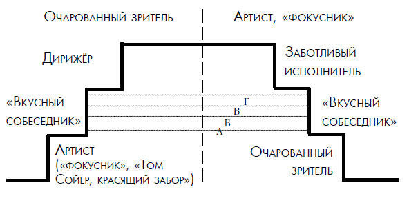 Дети, научившись самостоятельно что-то делать, найдя индивидуальный стиль исполнения деятельности, используют уже её как средство и форму для выражения своей неповторимости, превращаются в «артистов», творцов. Самостоятельность и потребность в творчестве позволяют им строить между собой отношения, основывающиеся на признании взаимных достоинств, искреннем интересе и симпатии друг к другу. Этот уровень проявится сам, если предыдущие освоены полноценно это следствие работы.