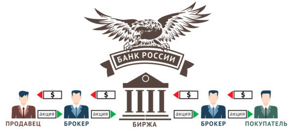 В нашей стране организатором торгов на фондовом рынке является Московская биржа. Ее основная задача «сводить» продавцов и покупателей для совершения сделок. При этом важно понимать, что инвесторы не совершают сделки самостоятельно, а делают это через посредника, в роли которого выступает брокер.