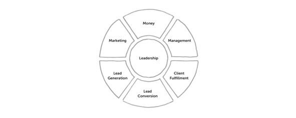 В системе E-Myth, бизнес это система, состоящая из следующих элементов: