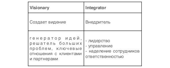 Викмэн назвал эти роли: visionary (визионер) и Integrator (интегратор)