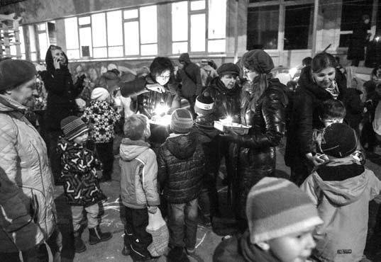 Этап «НАСЫПЬ ГОРУ»: всей командой на ткань собрать снег, потом поднять её всем вместе и перенести туда, где делается гора.