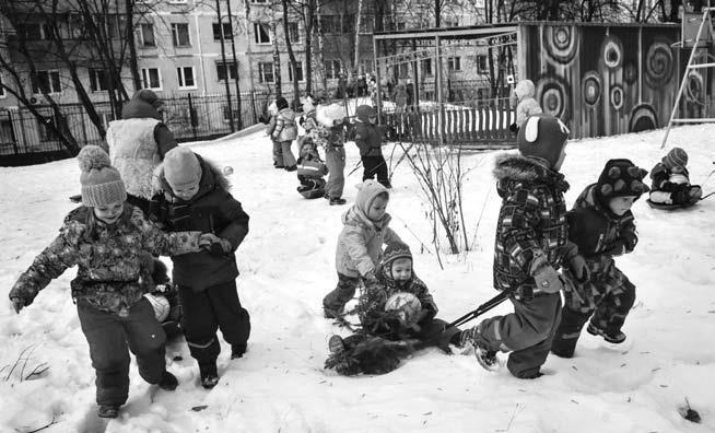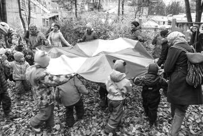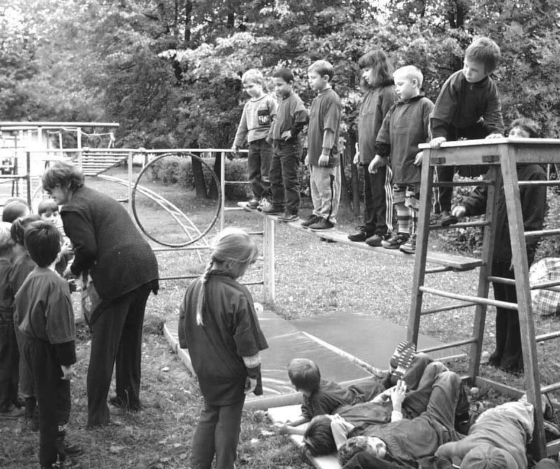 Младшие и те, кто ещё не освоился, часто ходят «по испытаниям» стайками с воспитателем. Самые маленькие просто любят поиграть в свои игры.