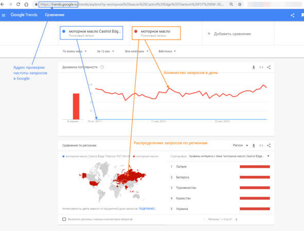 Но кроме запроса «моторное масло» пользователи набирали «моторное масло каждый день», «моторное масло q8», и ещё Google предлагает 11 вариантов.