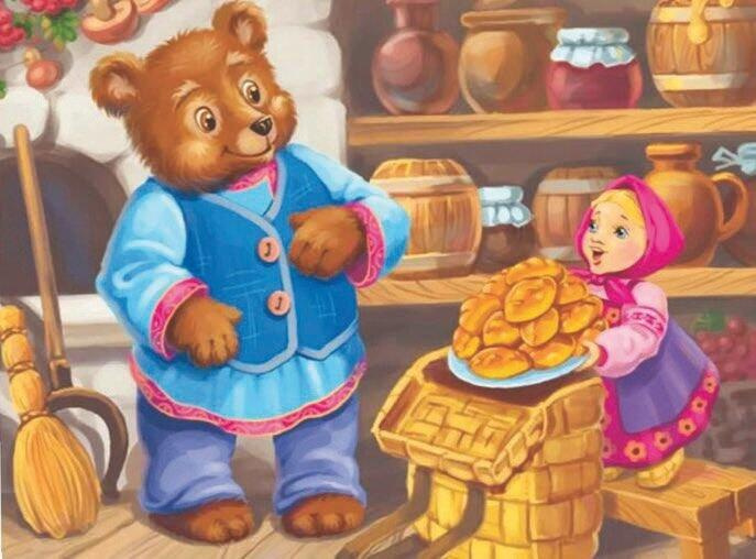 В сказке «Маша и медведь» находчивая девочка придумала хитрость, чтобы медведь сам вернул её домой к бабушке и дедушке. Для этого она испекла пирожки и попросила отнести их к любимым старикам. А сама незаметно вместе с пирожками уселась в большую корзину-рюкзак.